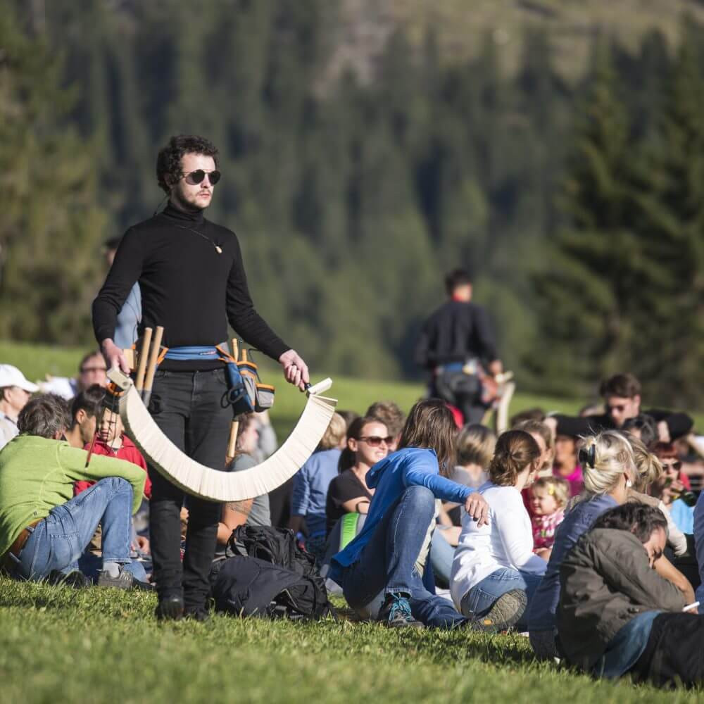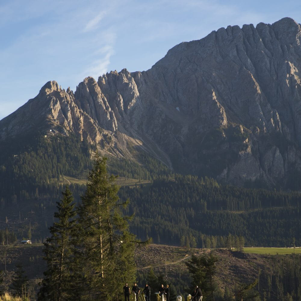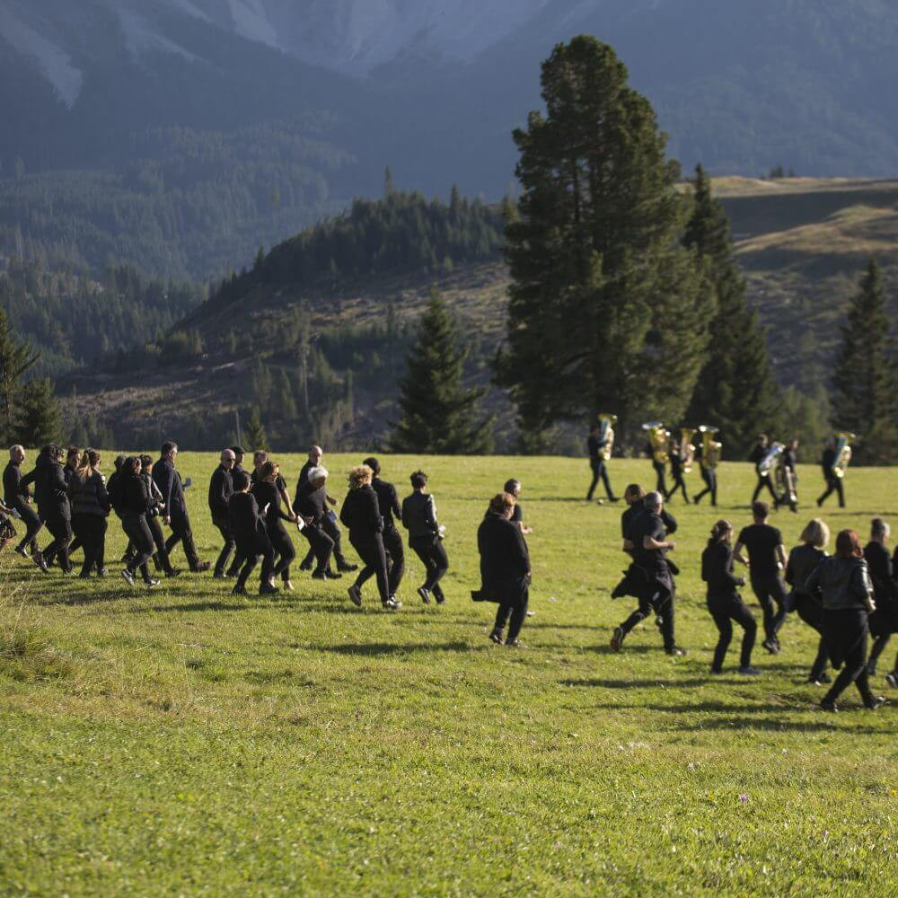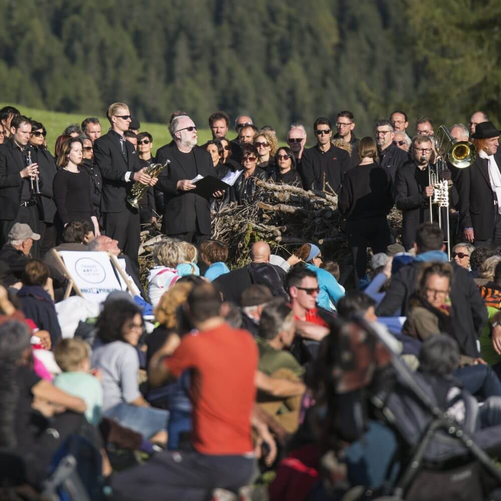 Nel 2013 il compositore Benedict Mason intraprese un viaggio nei luoghi remoti della Val Martello. Profondamente colpito dalle rovine dell’Hotel Paradiso, una macchia di rosso pompeiano adagiata tra i boschi selvaggi della valle, Mason accolse l’invito a scrivere un’opera per questo scenario. L’architetto Gio Ponti costruì l’hotel nel 1935, un’opera d’arte plastica per cui nel 2019 l’architetto sonoro Benedict Mason ha finalmente scritto un contrappunto musicale. Esplorando le possibilità acustiche e musicali dello spazio il compositore chiamerà a raccolta una vera e propria fanteria di musicisti, con 36 corni da caccia, 24 tube, 24 corni e un coro di 60 persone che dialogheranno con solisti di fama internazionale in questa mastodontica partitura per il paesaggio naturale.