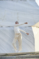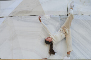 Die Choreographin und Tänzerin Sarah Merler hat sich für ihre Tanzperformance mit dem Thema Gletscher auseinandergesetzt: Ein Gletscher schmiegt sich an die Landschaft und formt sie, wenn er das Tal hinunterfließt. Dies geschieht in mikroskopisch kleinem Maßstab, da Bewegungen innerhalb und zwischen einzelnen Eiskristallen auftreten. Sie können aneinander vorbeigleiten, brechen und sich verformen und umkristallisieren, um neue Körner zu bilden. Gletscher fließen nicht nur, sie schmelzen auch in besorgniserregendem Tempo und geben dabei immer wieder neue Schätze frei.