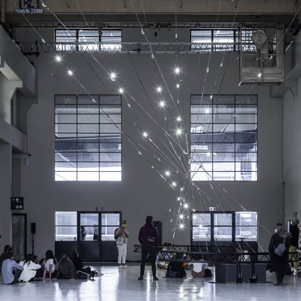 N-polytope ist ein Gesamtkunstwerk aus Raum, Licht und Klang des kanadischen Medienkünstlers Chris Salter, das auf die Polytope des Komponisten Iannis Xenakis aus den 1960 und 70er Jahren zurückgreift. Wie Xenakis geht es Salter um eine streng mathematische Komposition aller Elemente und das Zusammentreffen von Ordnung und Zufall. Anders aber als Xenakis, dessen Visionen in den 1960er Jahren Grenzen gesetzt waren, kann Chris Salter heute eine weiterentwickelte und vor allem lernfähige Computertechnik einsetzen. Diese sendet nicht nur visuelle und akustische Signale aus, sondern reagiert – gesteuert von selbstreflektierenden Algorithmen – auf die wechselnden Einflüsse ihrer Umgebung. So ist jede Aufführung vom Zufall abhängig und anders als die zuvor. Es entsteht aus der programmierten 25-minütigen Grundstruktur (Ordnung) eine nicht geplante Gesamtkomposition (Zufall) aus Lichtstrudeln oder vereinzelt aufflackernden Lichtpunkten, die an explodierende Sterne erinnern.