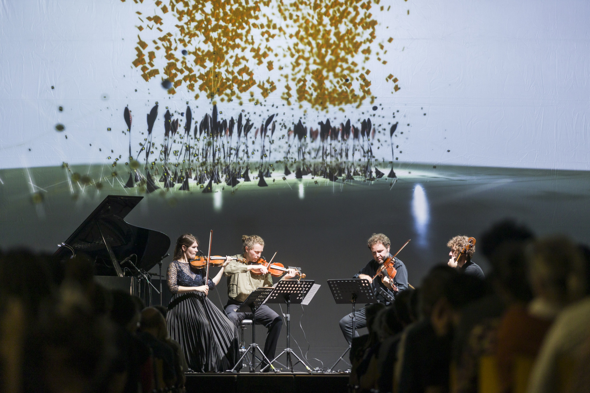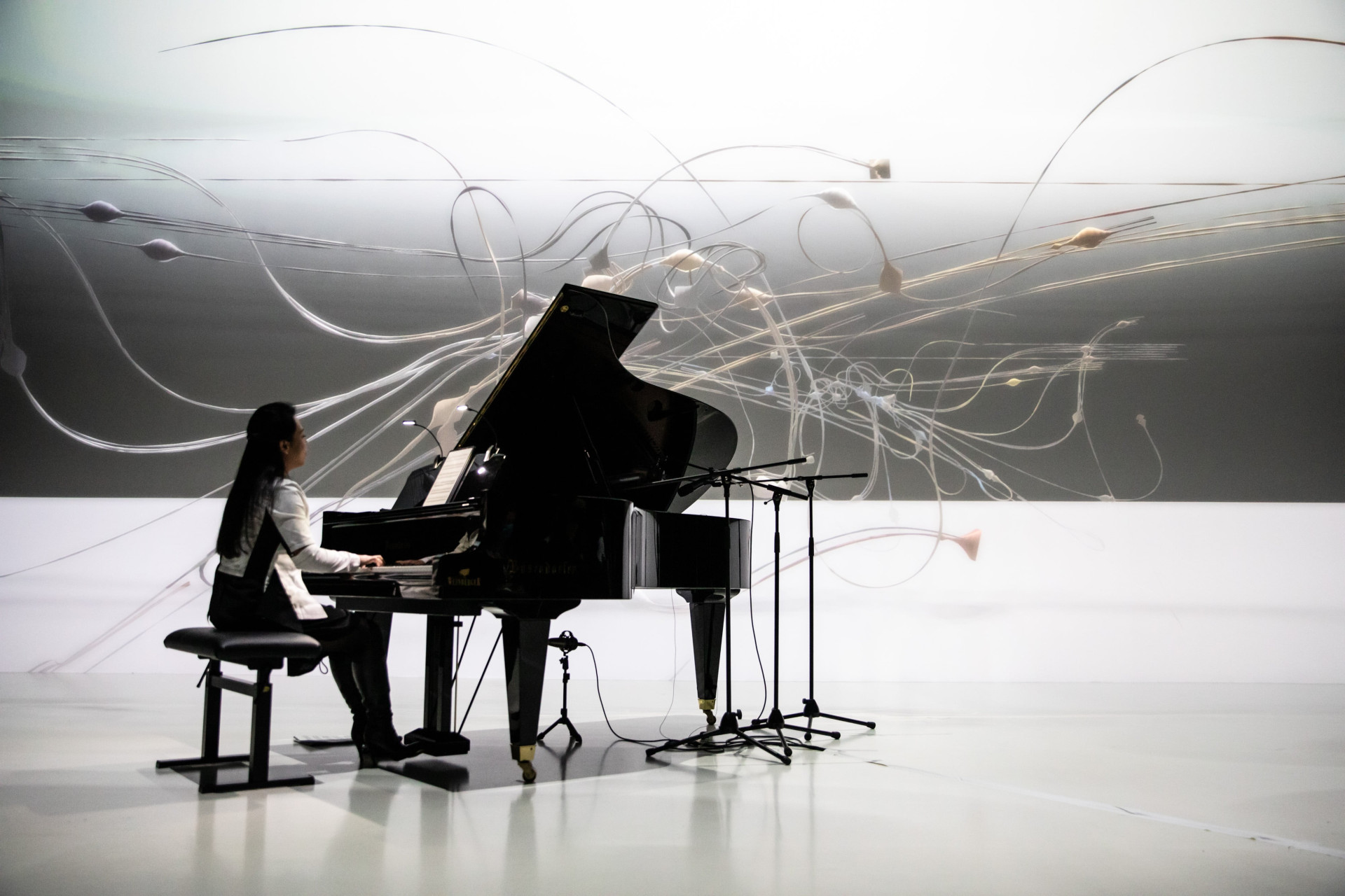 Pianographique - Musik und Bilder von Menschen und Maschinen verbindet zwei aktuelle künstlerische Forschungsprojekte der Ars Electronica, die sich beide der kreativen Verbindung von Instrumentalmusik und digitalen Technologien widmen. Das Konzert beginnt mit den KI-komponierten Musikstücken von Ali Nikrang, der als Komponist und Computerwissenschaftler Systeme entwickelt mit denen er Instrumentalmusik im Dialog mit der KI komponieret und diese dann für unterschiedliche Besetzungen arrangiert. Die Musik entsteht so in Kooperation von Menschen und Maschine und auch in der Aufführung werden Teile der Musik von einem Computerflügel und von einem Streichquartett gemeinsam interpretiert.