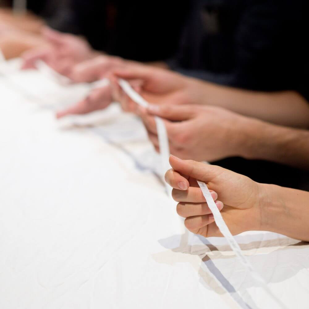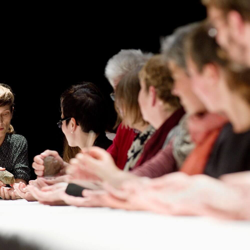 With In Many Hands, McIntosh dives into a tactile and multi-sensory world. She invites you to test, touch, listen and smell. She turns her back on the stage and opts for a series of sensory ‘situations’ which give you free rein to experiment. In Many Hands is part laboratory, part art fair, and part sensotopia: take your time to explore and follow your nose!