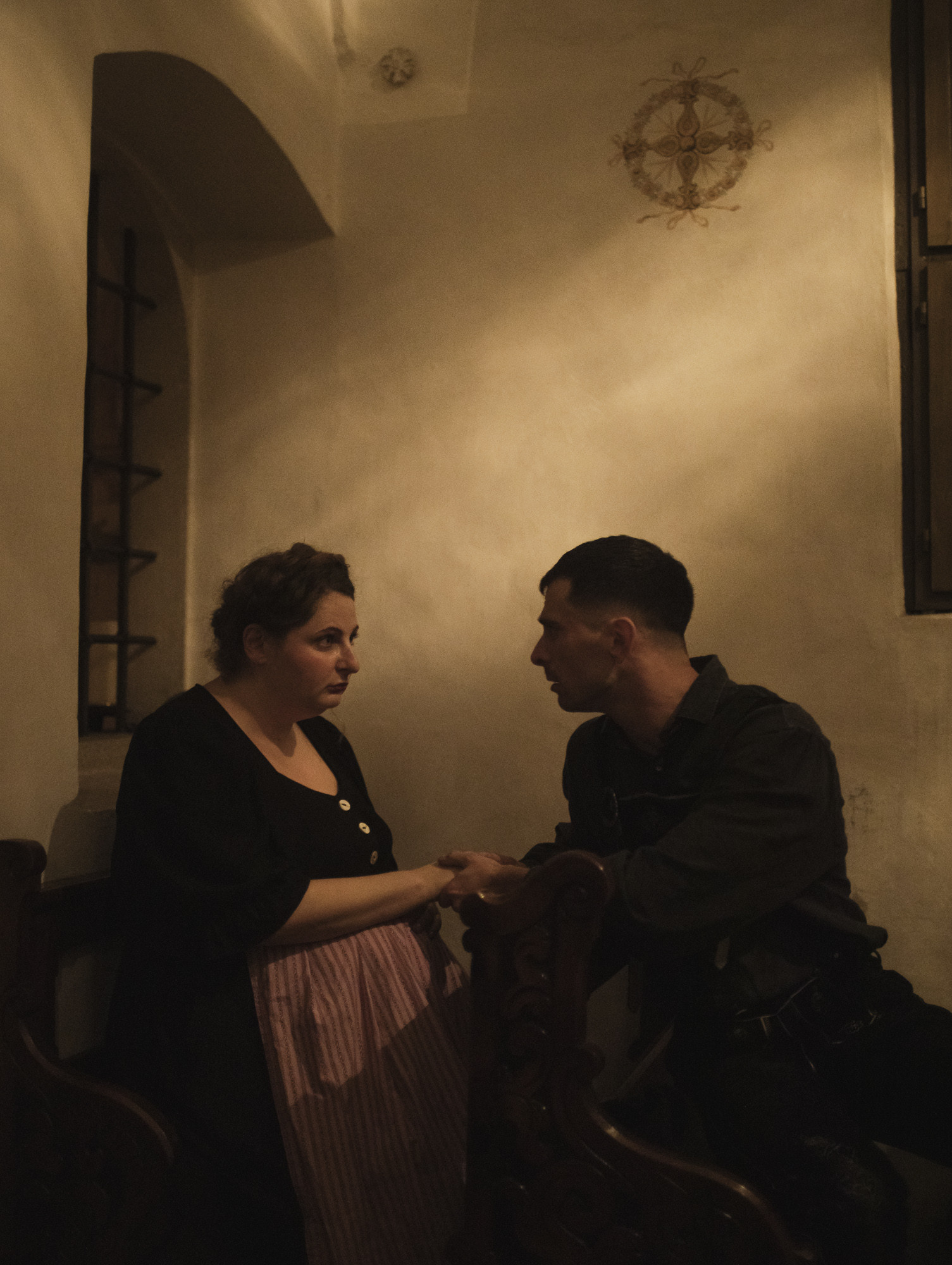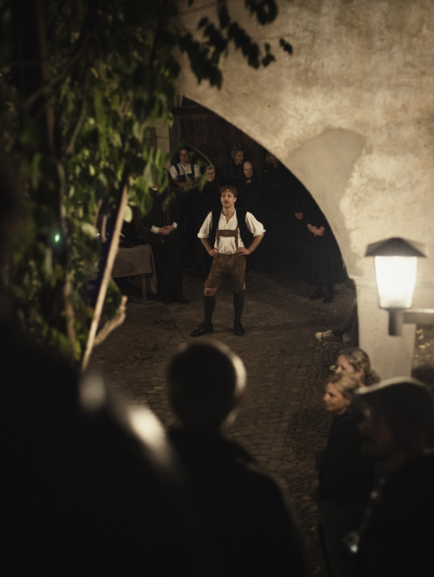 South Tyrol, 1965: Anna-Lisa, a farmer's daughter, is preparing for her wedding to Johannes, a farmhand, when her past catches up with her. Two uninvited guests arrive in the village—and with them, the knowledge of a gruesome crime. As the idyll gradually crumbles, the silence that lasted for generations over the villagers breaks with violence and hatred. What was supposed to end with a wedding now begins with a funeral banquet. Visitors are invited to the wedding. As they look back, they experience "The 7 Days of Mariahaim," which changes everyone and everything. The immersive theatre ensemble Nesterval considers itself queer folk theater. At the heart of each production is the desire to play, the creation of a theatrical experience, and the involvement of the audience in the performance. Die 7 Tage von Mariahaim is a version of the play Das Dorf, nominated for the Nestroy Prize in 2019, adapted for Vereinigte Bühnen Bozen and Transart Festival. Visitors embark on a search for the magic of home, a place of nostalgia, and explore big questions about foreignness, violence, love and guilt. Gender roles and role models are blurred and the concept of home is opened to a more diverse society.