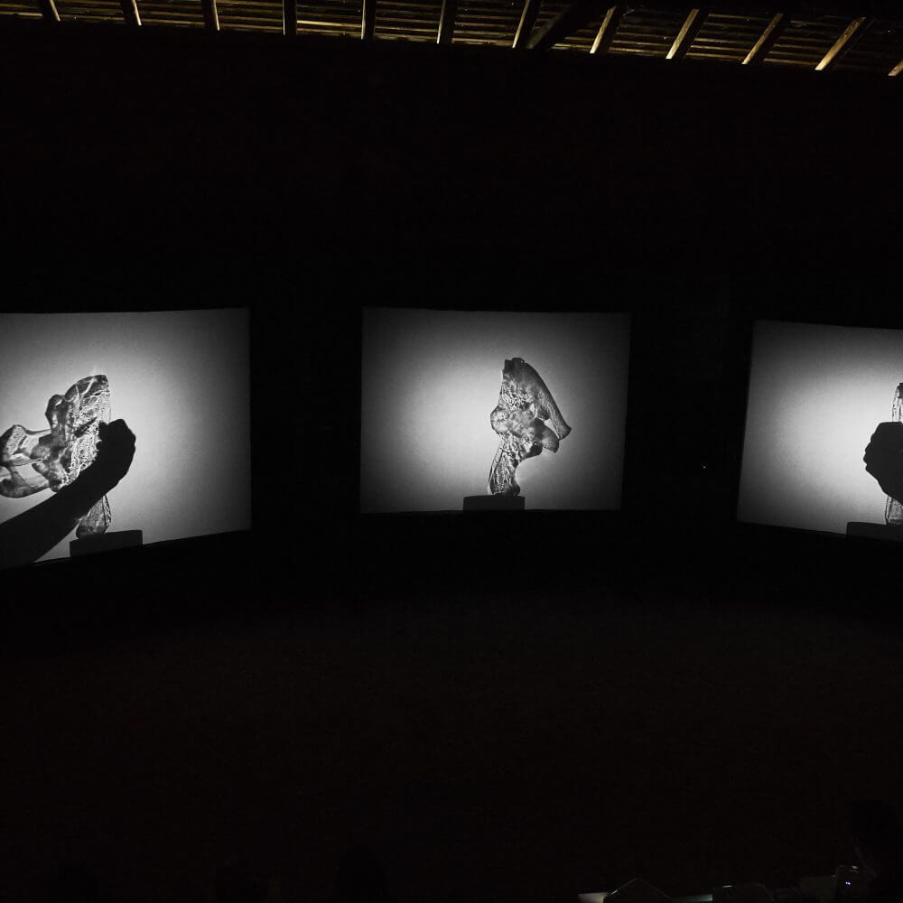 Polymorphic Archetypes è un’installazione audiovisiva, costituita da tre videoproiettori utilizzati per simulare la tecnica delle ombre cinesi. La luce filtrata da corpi trasparenti concede alle ombre una qualità quasi tridimensionale, che sorprendentemente ricorda un’immagine costruita digitalmente. Si crea così un rapporto dialettico tra luce e ombre, analogico e digitale, arcaico e contemporaneo.