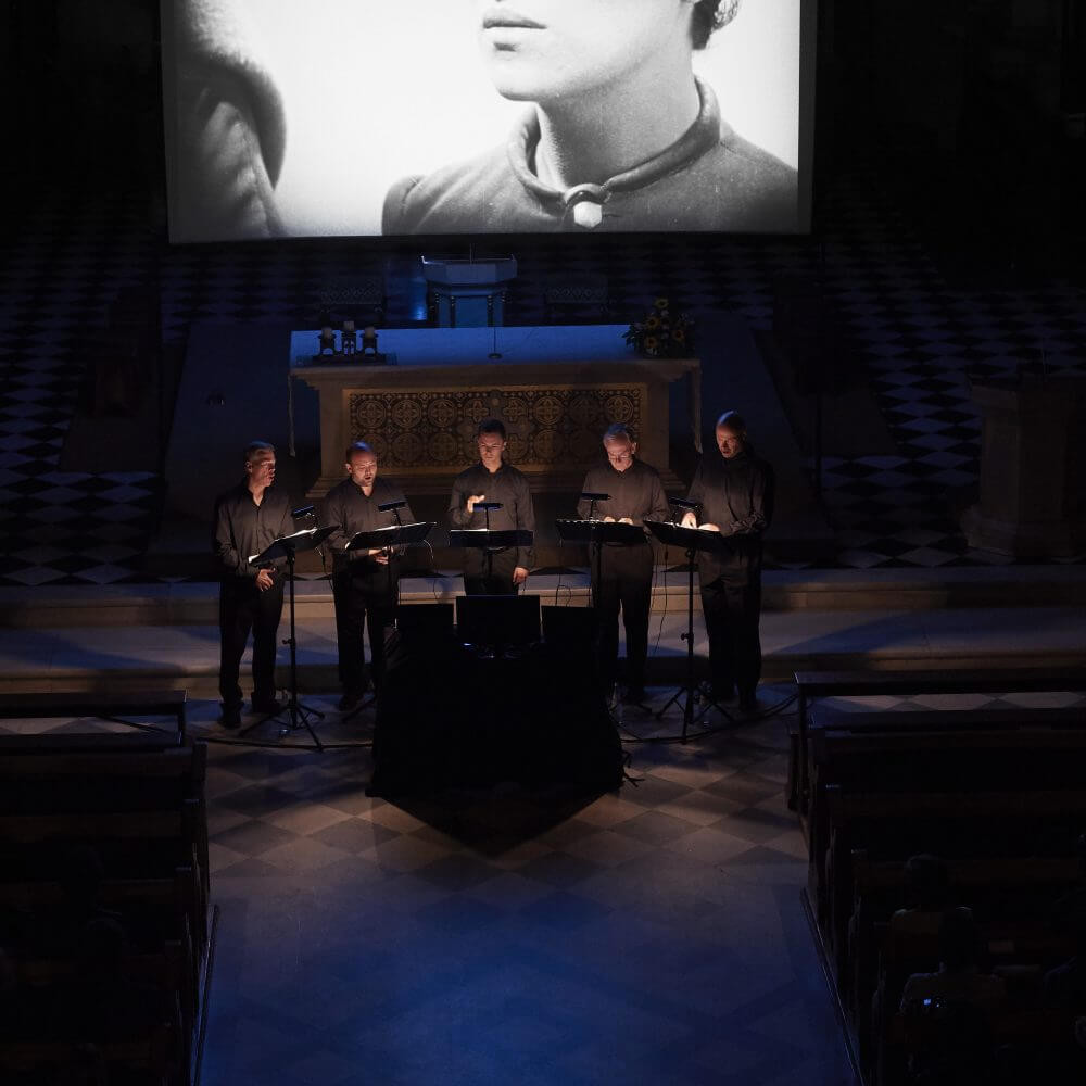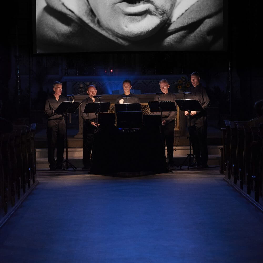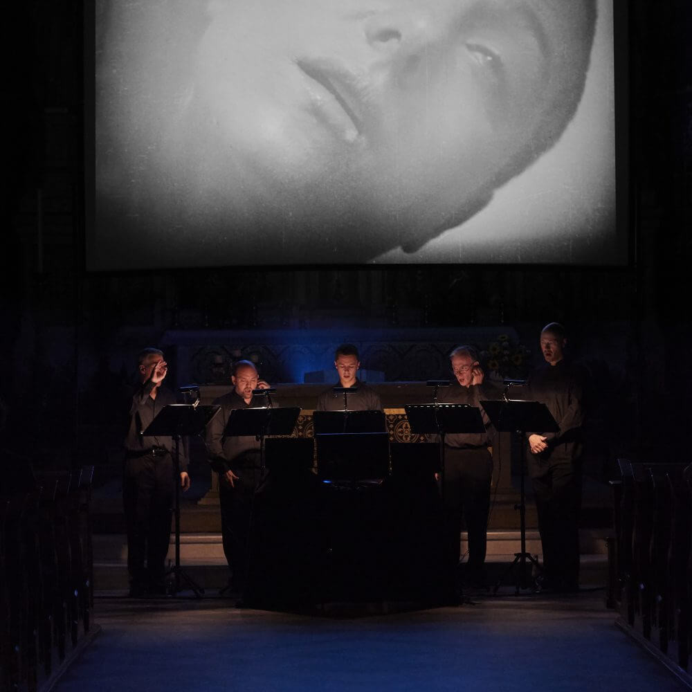 L’Orlando Consort rianima la pellicola di Dreyer cucendole addosso una nuova colonna sonora con musiche tratte dall'epoca in cui i fatti sono ambientati. L’intricata bellezza delle musiche del 15° secolo di Binchois e Dufay, i mottetti polifonici e il tormentato cantus firmus risuoneranno nella chiesa parrocchiale di Brunico sottolineando il potente ritratto di Dreyer del processo ed esecuzione di Giovanna D’Arco nel 1431, con i suoi soffocanti primi piani, le scenografie di gusto espressionista e gli arditi movimenti di camera.