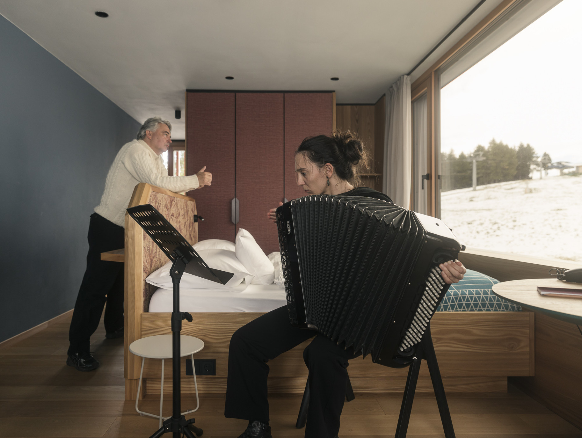 Come il mitologico Icarus, anche INAUDITO / UNERHÖRT è attratto dal cielo, dalla vastità dell'Alpe di Siusi e proprio qui trova quest'anno un rifugio speciale all'ICARO Hotel. Immerso in una delle aree più ricche di biodiversità dell'Alto Adige, la sua architettura custodisce opere d'arte accuratamente selezionate, che narrano storie. Per qualche ora, i musicisti di Studio Dan e dell'ensemble chromoson si immergeranno in questo luogo di riflessione e di ascolto, intrecciando storie, inventandone di nuove e lasciando alla musica intessere nuovi racconti. Come in un colorato e scintillante prato alpino, gli interventi sonori crescono dentro e fuori dall'ICARO e cercano giocosamente di creare un ponte fra interno ed esterno.