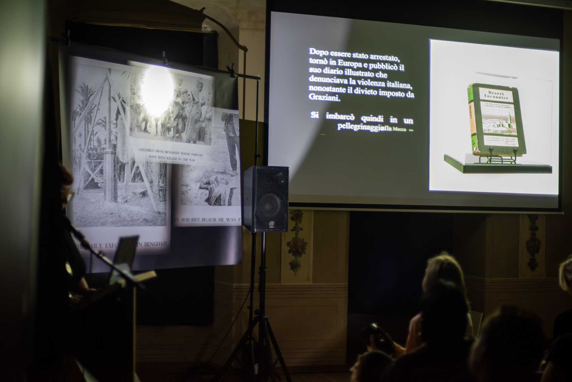 La nuova performance-lecture di Alessandra Ferrini, pensata in dialogo con l'installazione a Sight Unseen, si concentrerà sulla cosiddetta "penetrazione pacifica", che la storica Roberta Pergher identifica come la tattica di insediamento che collega il colonialismo italiano interno ed esterno, con specifico riferimento al Sud Tirolo e alla Libia. L’obiettivo dell’intervento è di confrontare alcuni contenuti del romanzo anticoloniale Il coscritto di Gebreyesus Hailu (trad. it. TAMU) con i casi di coscrizione forzata nel Sudtirolo durante l'occupazione dell'Etiopia.